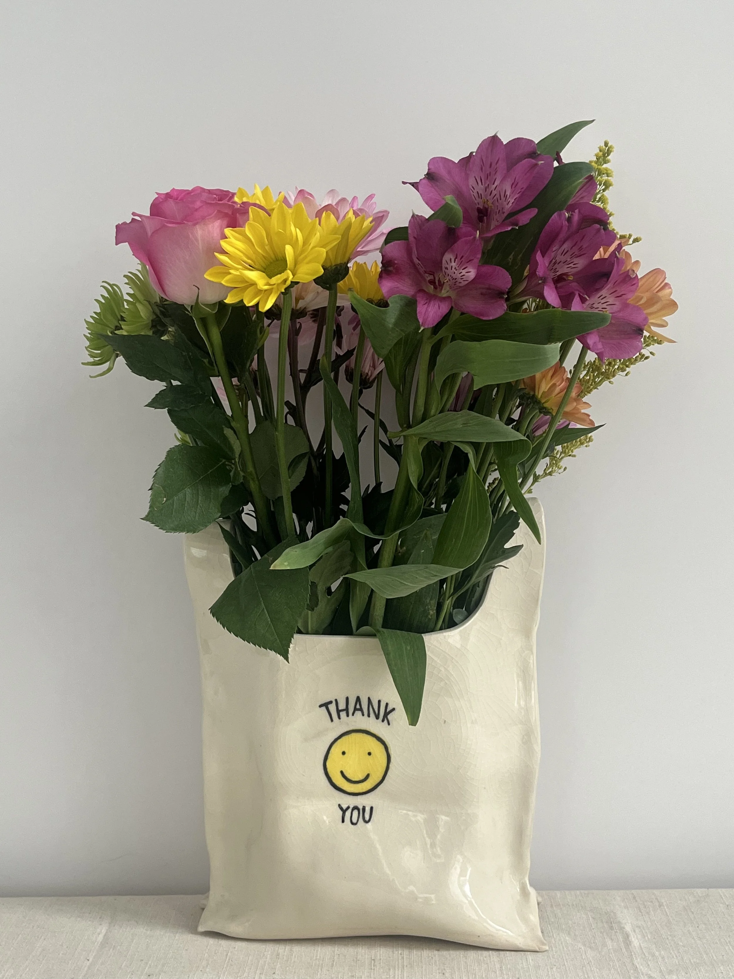 Q: Could you share how the idea for the “THANK YOU” vase came about? Was there a specific moment that made you want to bring that graphic into a ceramic form?